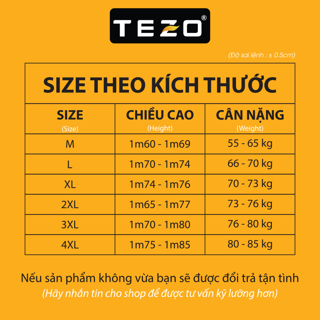 - Logo thương hiệu TEZO được in tráng gương trước ngực áo.