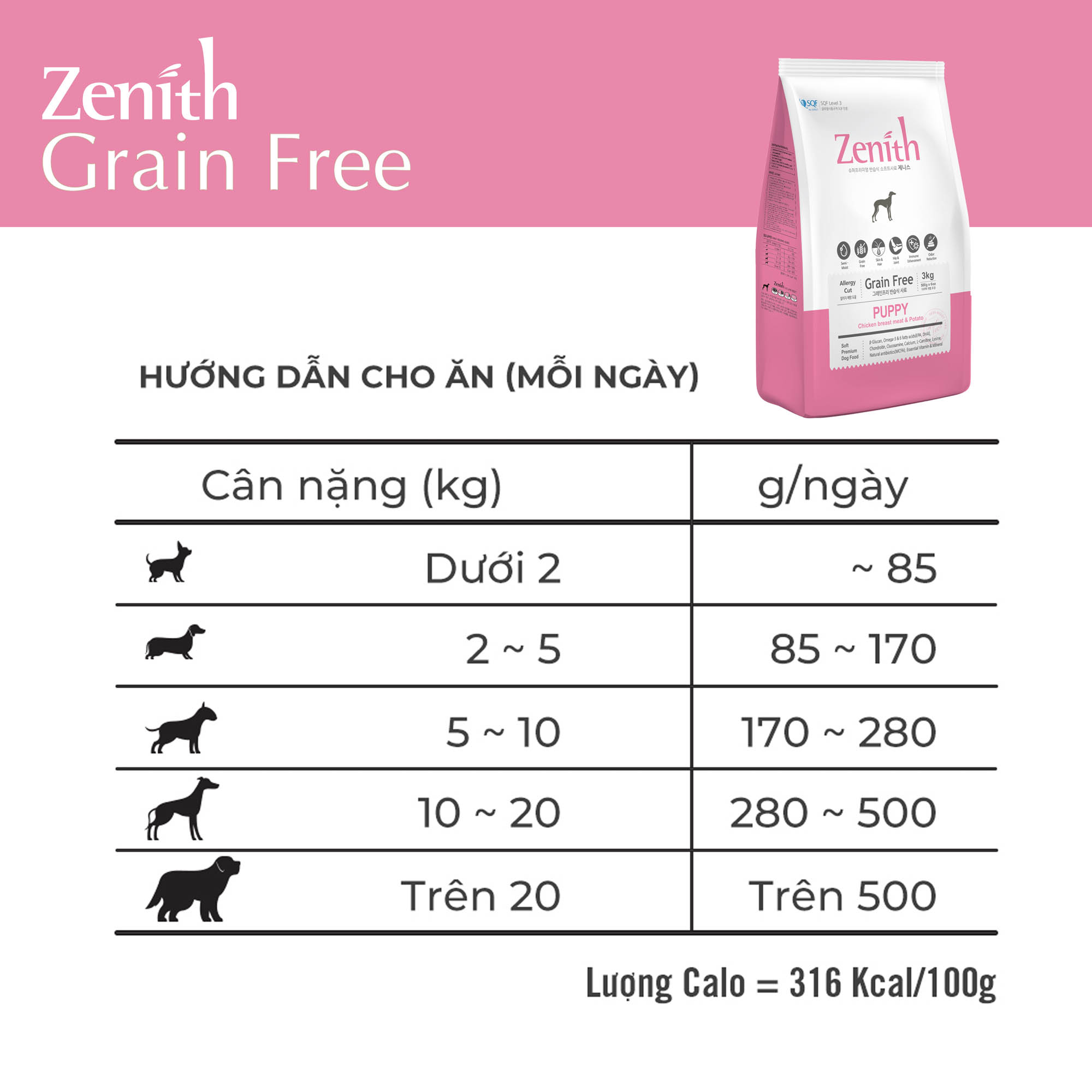 Thức ăn hạt mềm chó con Zenith Puppy được chế biến từ thịt cừu tươi, thịt nạc gà rút xương, gạo lứt, yến mạch và dầu cá hồi. Với các thành phần tươi sạch, giàu dinh dưỡng, Zenith Puppy hạt mềm, cung cấp độ ẩm cao và lượng muối thấp, thơm ngon, dễ nhai, dễ tiêu hóa và tốt cho sức khỏe chó con.