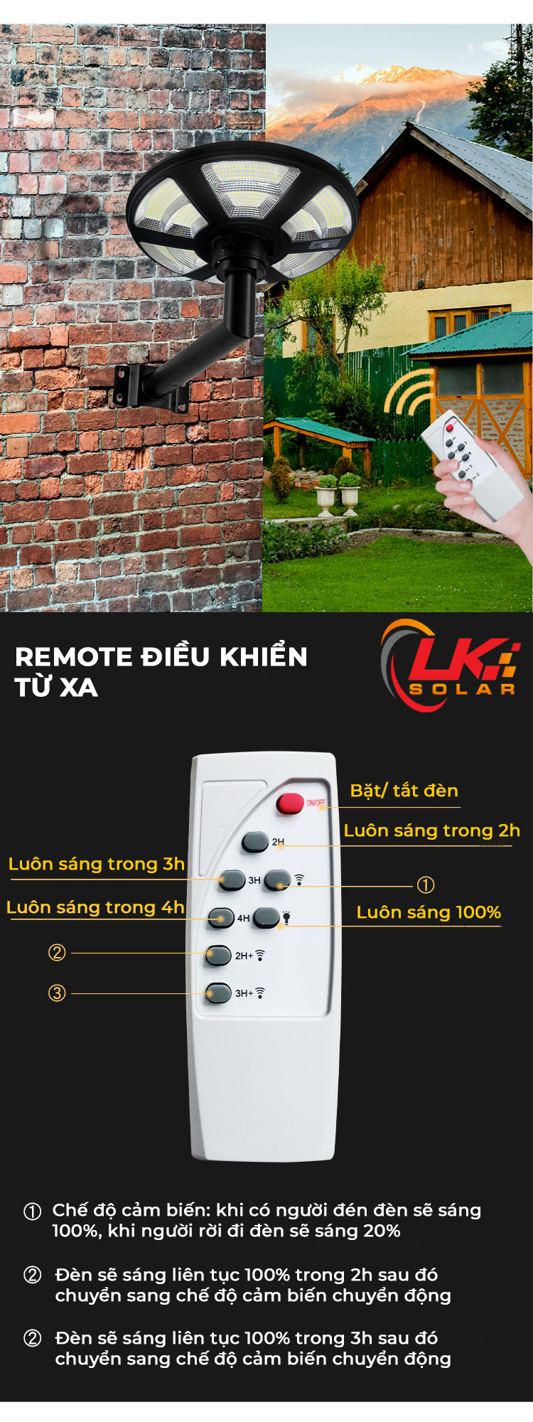 - Sản phẩm sử dụng 100% năng lượng mặt trời