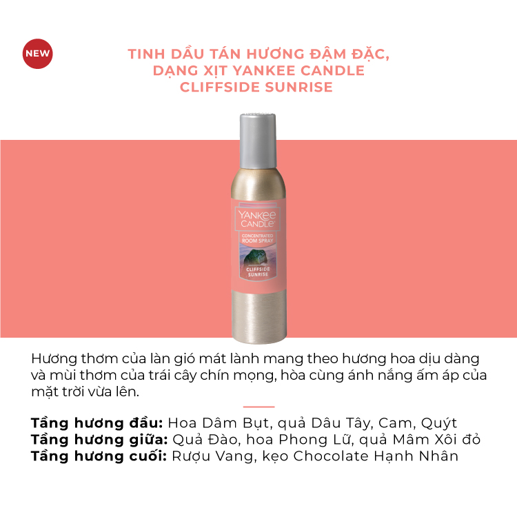 Mua Tinh dầu tán hương đậm đặc dạng xịt Yankee Candle - Cliffside Sunrise (42.5g) giá rẻ nhất ở đâu?Yankee Candle