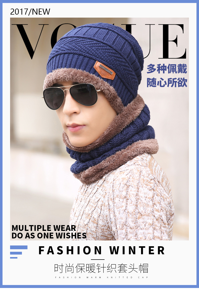 88,000₫Giới thiệu Mũ len lót lông kem khăn len lót lông chụp cổ mũ của đàn ông mùa đông Hàn Quốc sóng len mũ dày đan mũ mùa thu và đội mũ mùa đông MS57