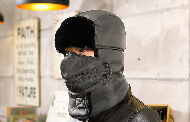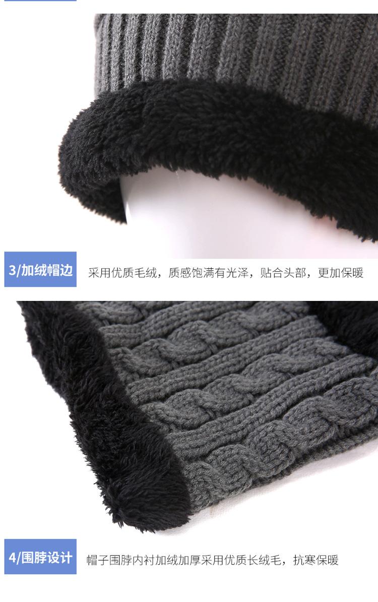 Mũ len lót lông kem khăn len lót lông chụp cổ mũ của đàn ông mùa đông Hàn Quốc sóng len mũ dày đan mũ mùa thu và đội mũ mùa đông MS57