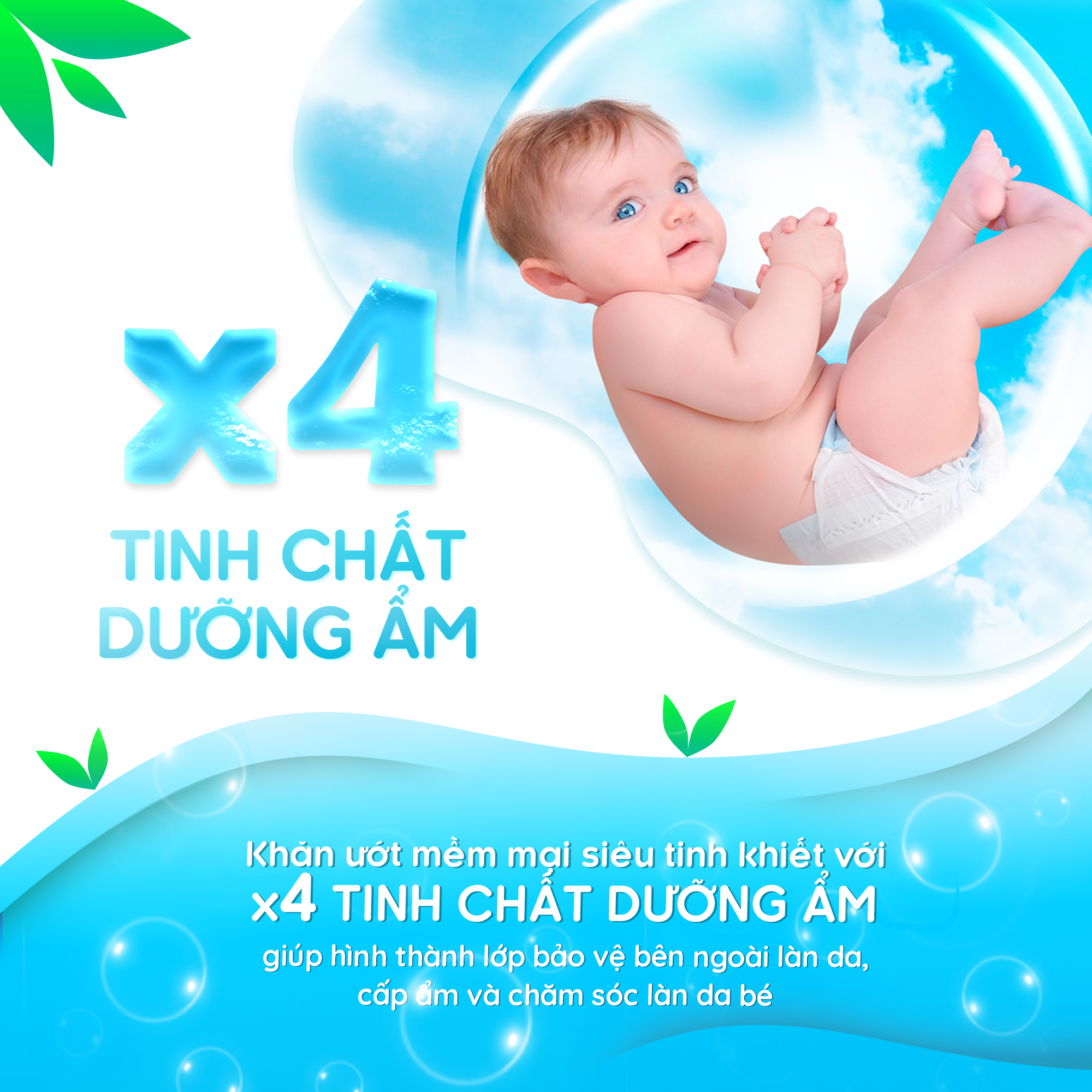 - Công thức độc quyền với bong bóng dưỡng ẩm hoàn toàn an toàn và nhẹ dịu cho da bé, giúp lau thường xuyên mà không gây khô, ngứa cho da, giữ ẩm và cân bằng độ ẩm