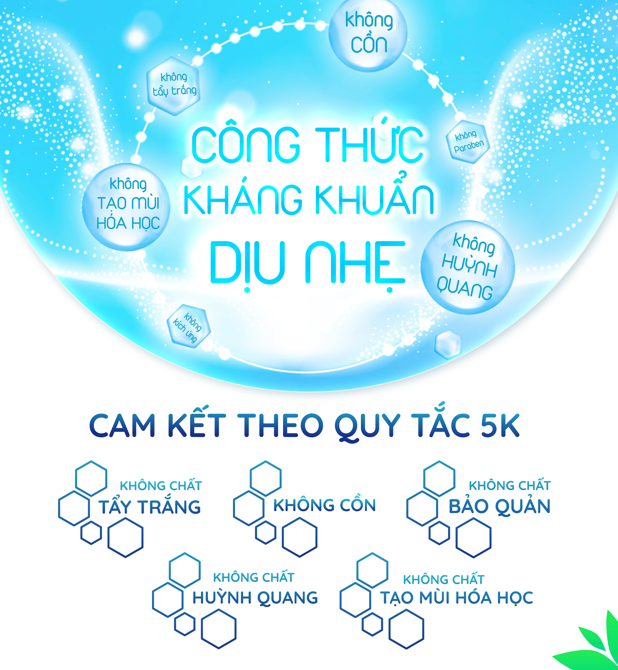 - 5 Không duy nhất: Không chất huỳnh quang, không chứa cồn, không chất tẩy trắng, không chứa MI, không chứa paraben, không gây kích ứng*