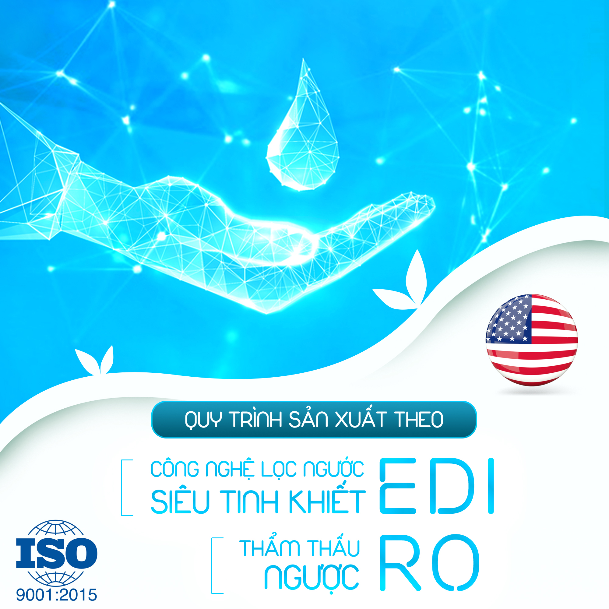- Nước siêu tinh khiết EDI của Mỹ và thẩm thấu ngược RO, đạt 99,9%