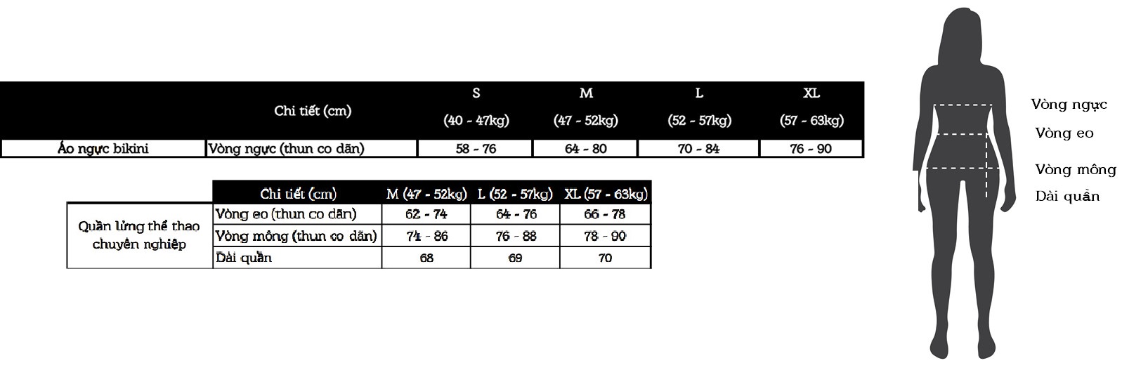 BẢNG QUY ĐỔI KÍCH THƯỚC