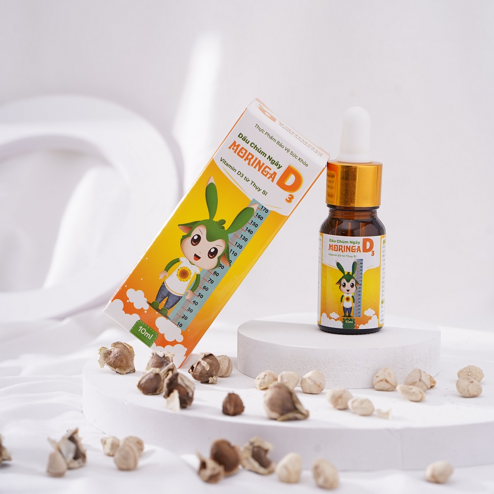 Dầu chùm ngây MORINGA D3 là sản phẩm đầu tiên và duy nhất kết hợp vitamin D3 và dầu hạt chùm ngây có nguồn gốc 100% từ thiên nhiên, đã được hàng trăm nghìn mẹ tin dùng và được bán tại các nhà thuốc, quầy thuốc trên toàn quốc.