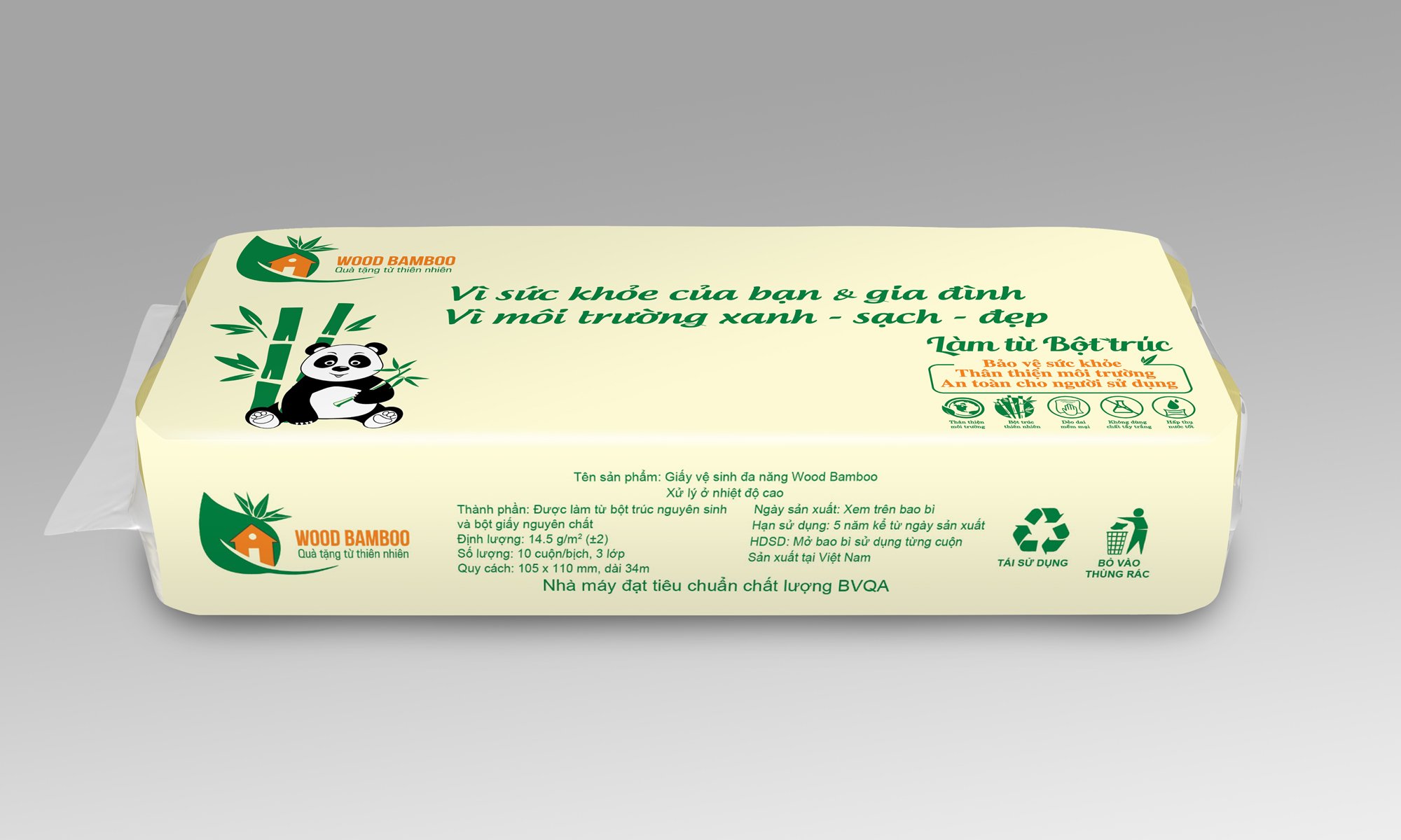 Giấy vệ sinh đa năng không lõi WOOD BAMBOO 3 lớp
