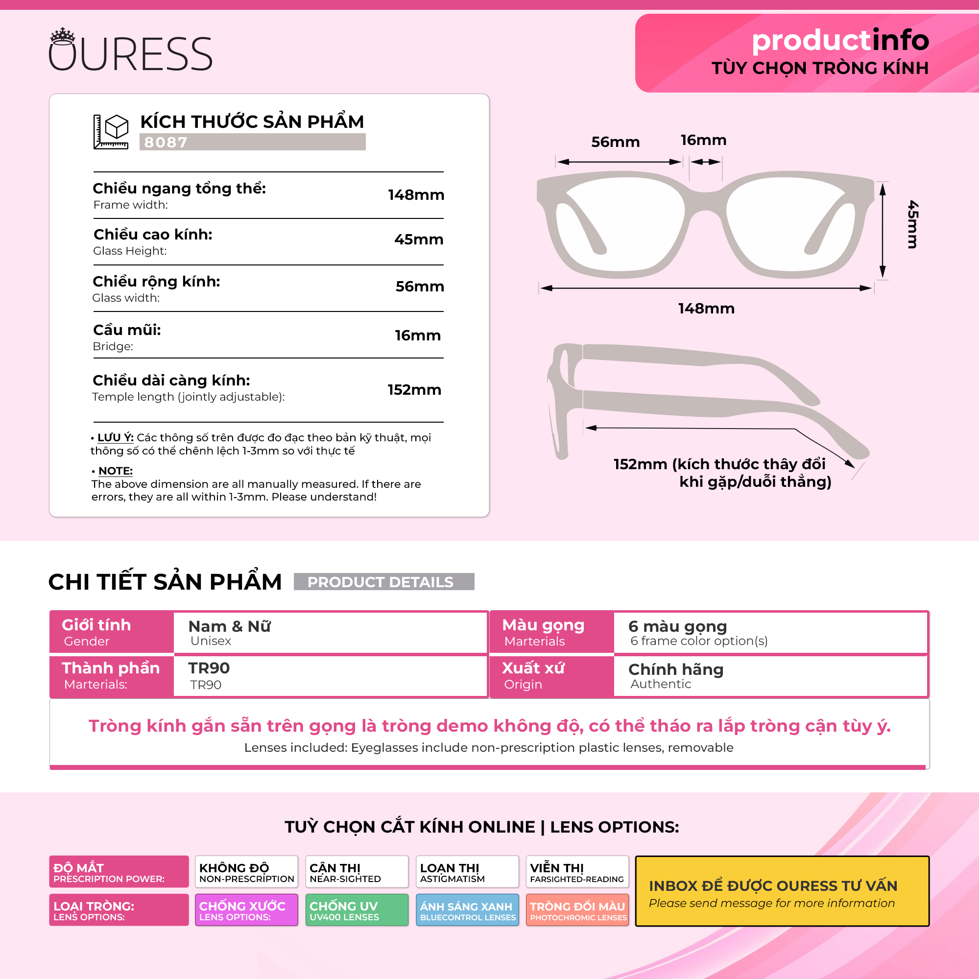 Gọng kính 8087 nhựa cao cấp siêu bền thời trang nam nữ OURESS