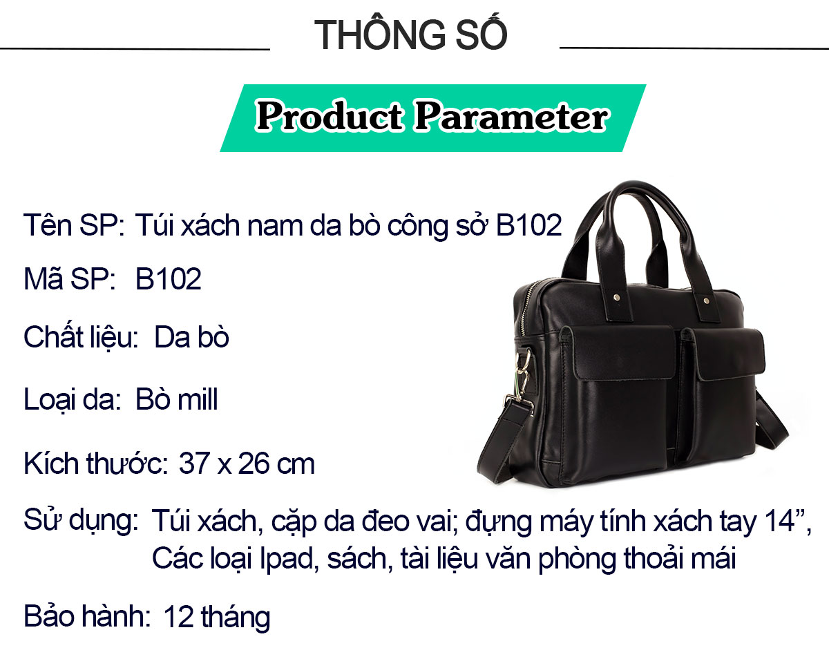 Cặp da nam công sở da bò mill cao cấp B102, cặp đựng laptop da thật nhiều ngăn, túi xách công sở nam đựng được nhiều tài liệu A4, Fullbox hộp sang trọng làm quà tặng, thương hiệu Bụi leather chuyên đồ da thật, bảo hành 12 tháng