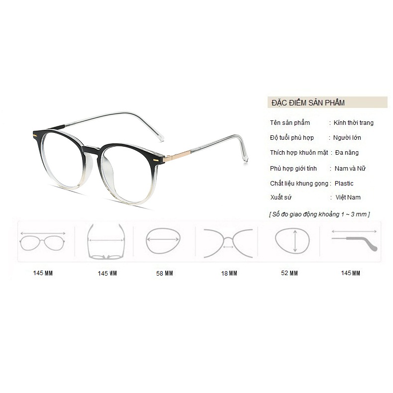 Giới thiệu Gọng Kính Cận, Kính Giả Cận Mắt Oval Tròn Ombre, Đen, Gọng Nhựa Cao Cấp - B LUE LIGHT