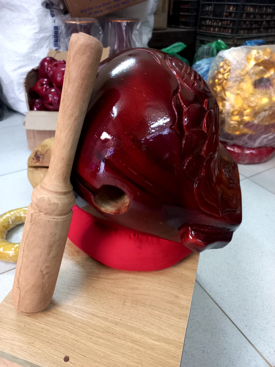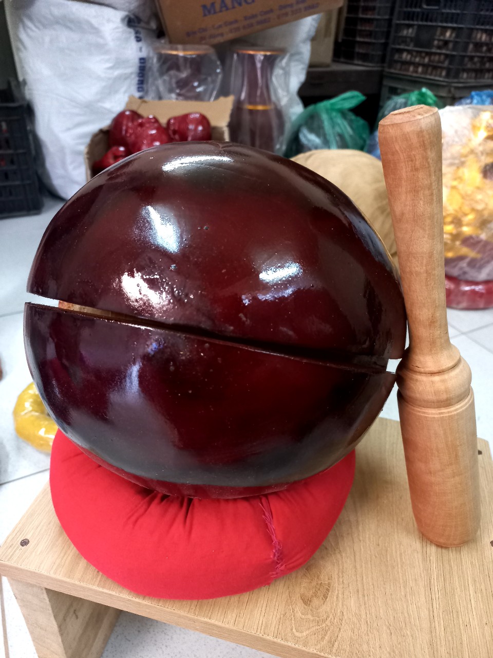_ Kích thước 14cm +dùi gỗ mõ và đế vải lụa kê mõ