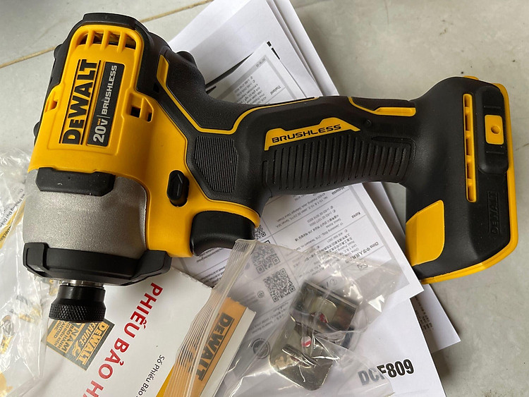 - Đầu lắp mũi vít là 1/4 inch (6.25mm), vỏ máy bằng nhựa nhìn chắc chắn, tay cầm bọc cao su giúp người dùng thoải mái trong quá trình sử dụng.