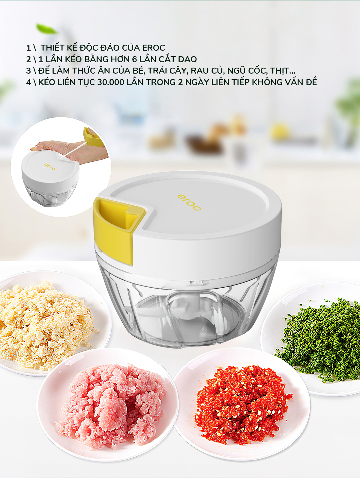 Mua Dụng Cụ Xay Cắt Tỏi Ớt 5 Lưỡi Dao Bằng Tay 900ml Quick Chopper Eroc V-KT-90-PC01 - Hàng Chính Hãng giá rẻ nhất ở đâu?Giới thiệu Dụng Cụ Xay Cắt Tỏi Ớt 5 Lưỡi Dao Bằng Tay 900ml Quick Chopper Eroc V-KT-90-PC01 - Hàng Chính Hãng