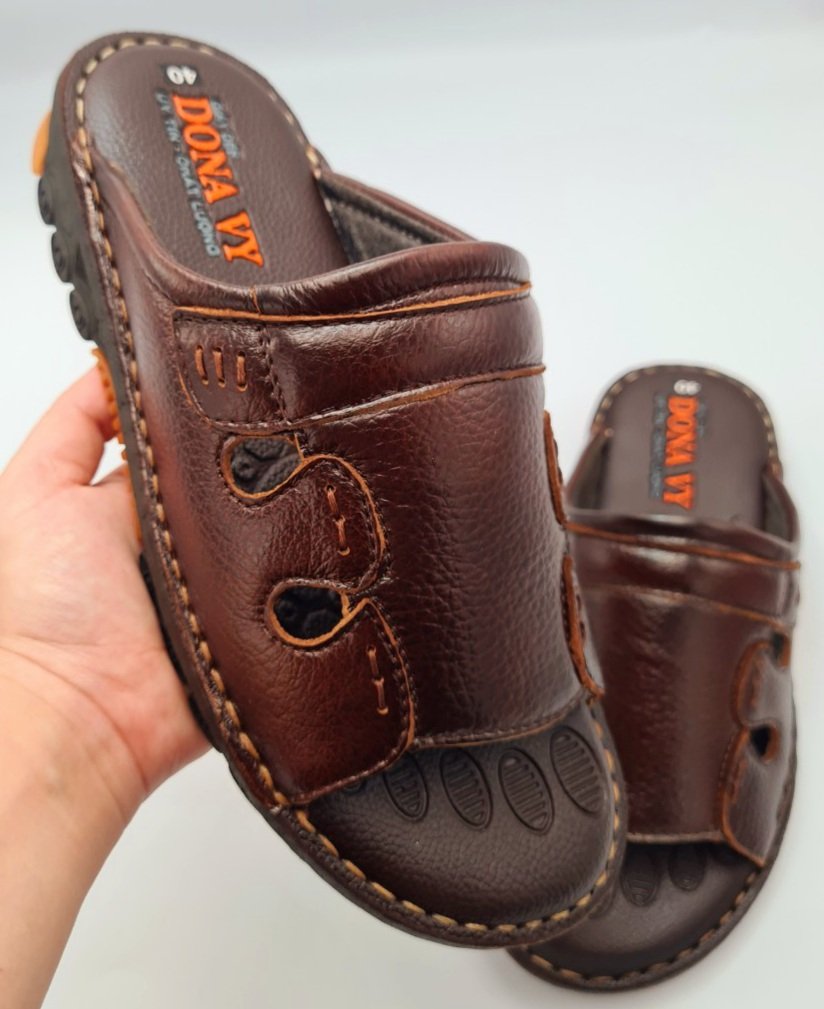 - Dép Nam với chất liệu da bò bền đẹp kết hợp đế cao su êm nhẹ chống trơn trượt giúp bạn Nam luôn thoải mái, tự tin khi đi chơi, dạo phố, đi làm nơi công sở hay đi dự tiệc.