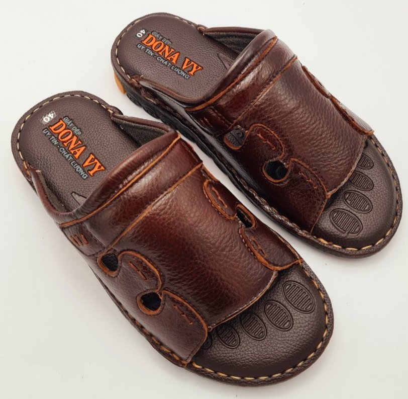 Mua DÉP NAM DA BÒ THẬT 100% DONAVY CAO CẤP ĐẾ CAO SU CAO 3CM, MAY QUAI XUỐNG ĐẾ CHẮC CHẮN, MẶT ĐẾ IN HÌNH 05 NGÓN CHÂN RẤT BÁM CHÂNDONAVYKHAUVIEN giá rẻ nhất ở đâu?DONAVY
