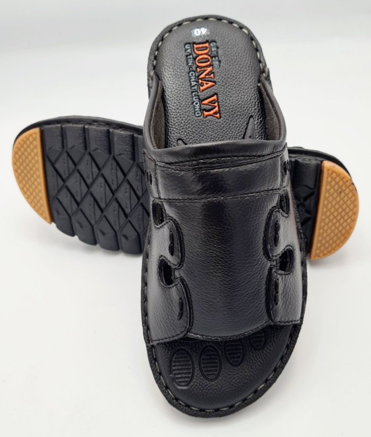 DÉP NAM DA BÒ THẬT 100% DONAVY CAO CẤP ĐẾ CAO SU CAO 3CM, MAY QUAI XUỐNG ĐẾ CHẮC CHẮN, MẶT ĐẾ IN HÌNH 05 NGÓN CHÂN RẤT BÁM CHÂNDONAVYKHAUVIEN