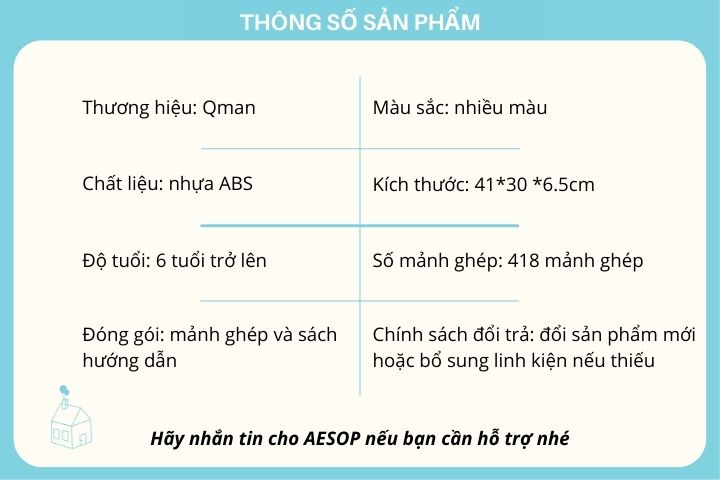 Gồm 418 mảnh ghép kích thước tiêu chuẩn (khớp với lego) bằng chất liệu nhựa ABS an toàn cho trẻ và lên màu thành phẩm sinh động, đáng yêu thích hợp với bé gái