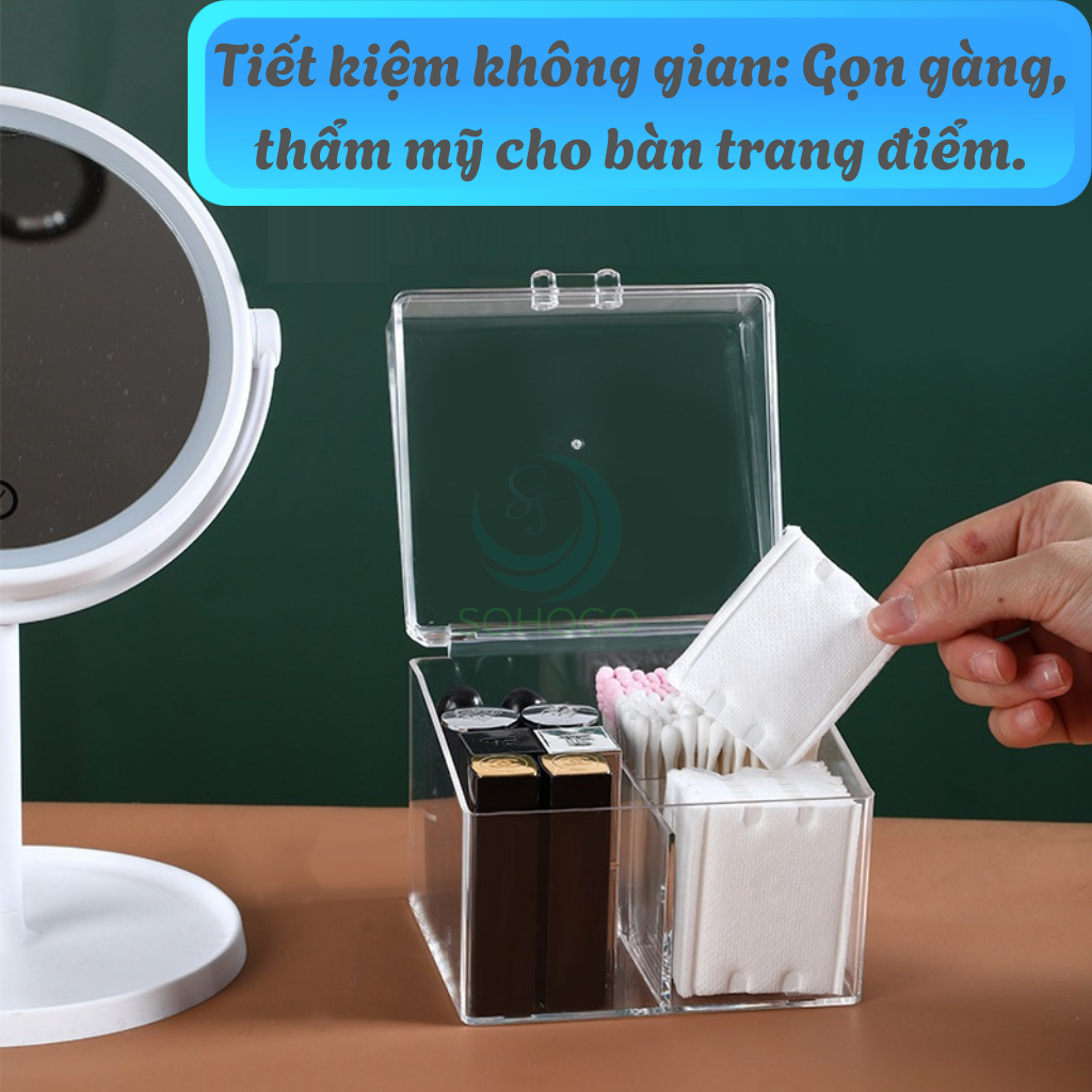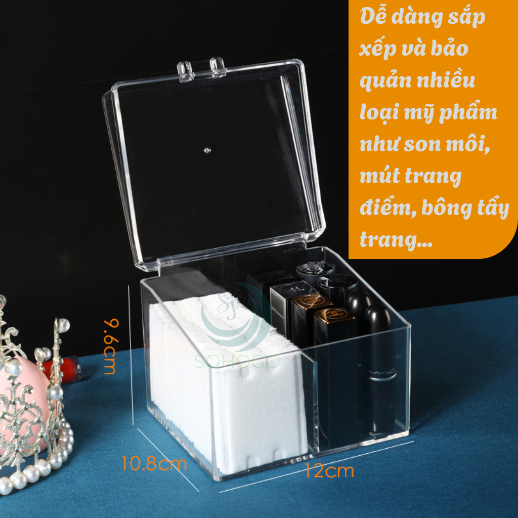 Hộp Đựng Mỹ Phẩm Đa Năng Trong Suốt- Hộp Nhựa Trong Đựng Son, Mút Trang Điểm, Bông Tẩy Trang- Hộp Đựng Mỹ Phẩm Có Nắp Sang Trọng- Hộp Trang Điểm Mini Gọn Gàng- Hộp Đựng Đồ Makeup Chia Ngăn Tiện Lợi