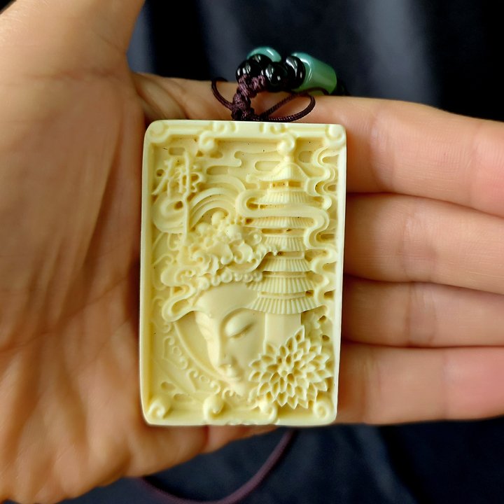 Mua Dây chuyền, mặt dây chuyền hình thẻ khắc biểu tượng tháp chấn yêu bằng quả ngà (trái dừa ngà -màu trắng ngà) - MN01 giá rẻ nhất ở đâu?Giới thiệu Dây chuyền, mặt dây chuyền hình thẻ khắc biểu tượng tháp chấn yêu bằng quả ngà (trái dừa ngà -màu trắng ngà) - MN01