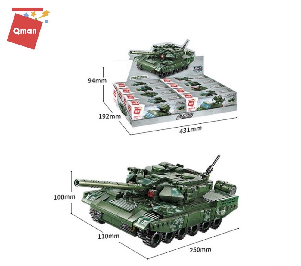 Đồ chơi lắp ráp xếp hình 8 trong 1 chủ đề quân sự Qman 42301 - Xe tăng quân sự (642 chi tiết)