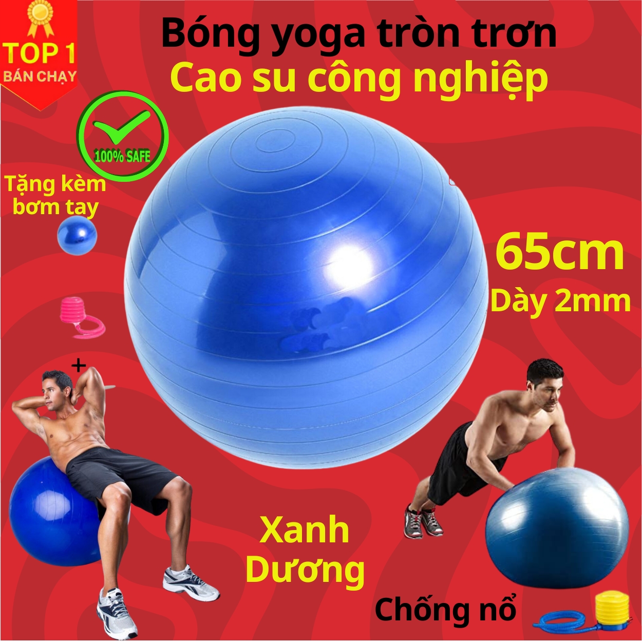 Bóng tập Yoga trơn cao cấp 65cm - Bóng Yoga tròn chống nổ - Hàng chính hãng D Danido