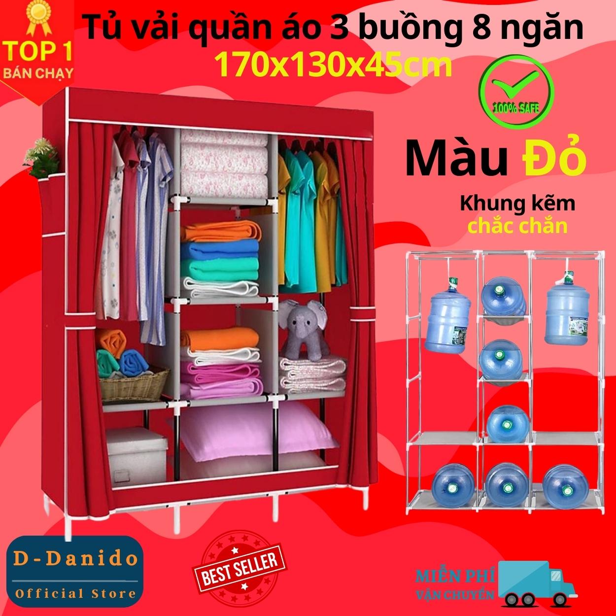 Nhập mã TECKITKBD FREESHIP 20k cho đơn 0đ tại Tiki.Vn Giới thiệu Tủ quần áo 3 buồng 8 ngăn cao cấp thế hệ mới, Tủ vải quần áo khung Inox vững chắc chất lượng cao - Hàng chính hãng D Danido