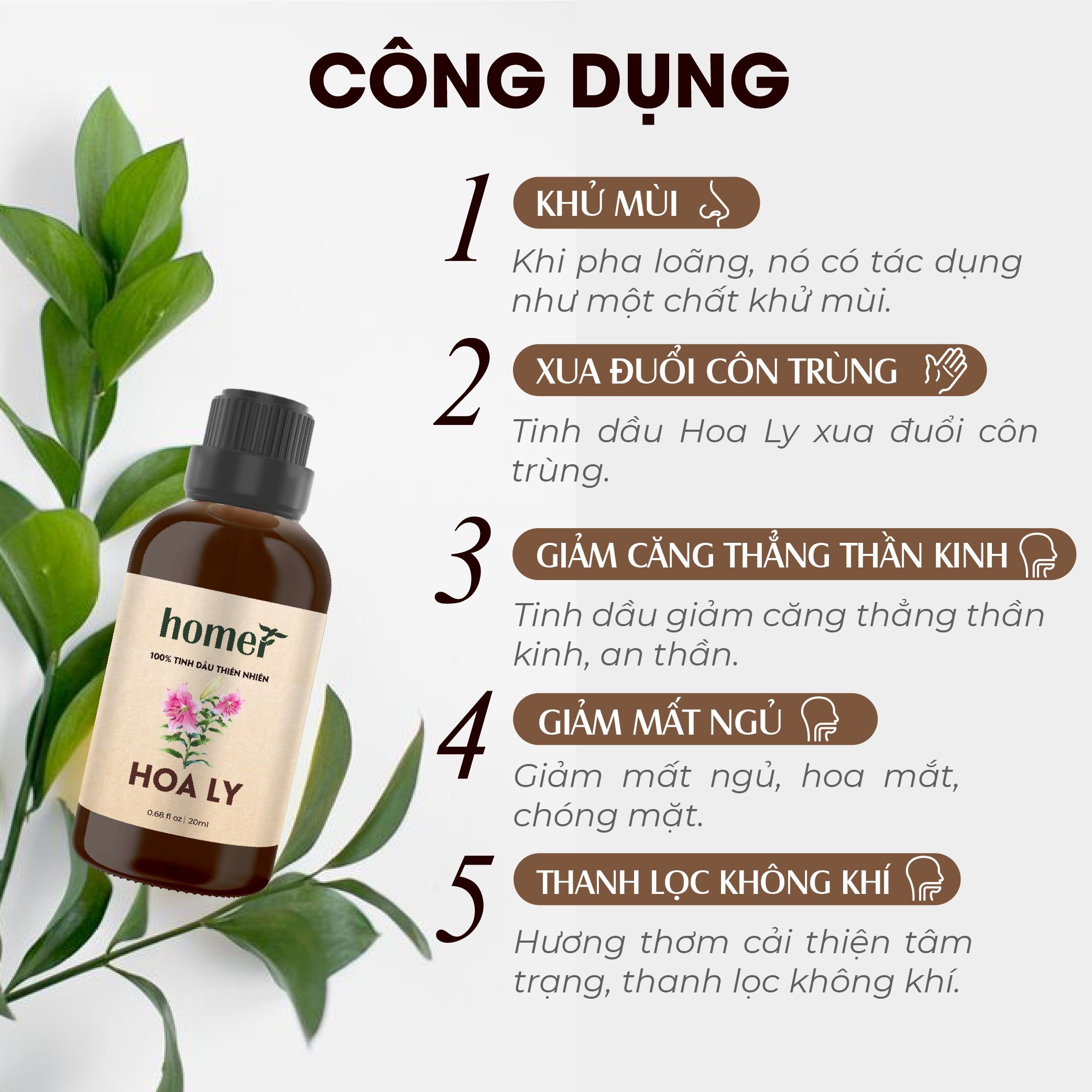 Tinh Dầu Hoa Ly Homer 100ml - Chính Hãng, Đạt Chuẩn Kiểm Định Cao Cấp - Tinh Dầu Xông Thơm Phòng, Thư Giãn, Khử Mùi hiệu quả