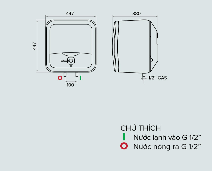 | Kích thước | Kích thước WxHxD: 447x447x380 (mm)