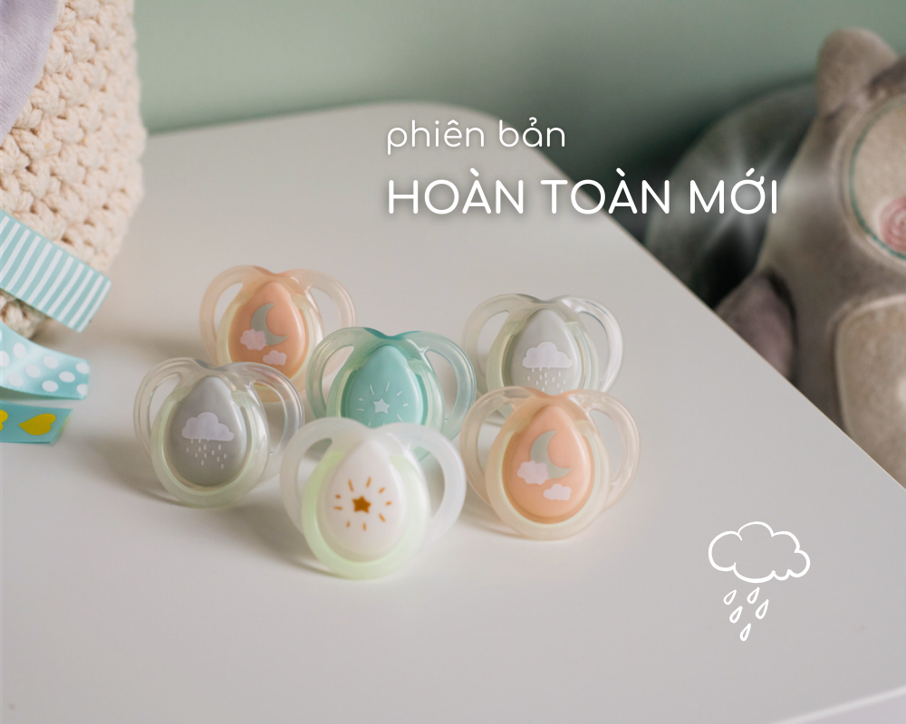 1 x Ty ngậm dạ quang cho bé Tommee Tippee Night Time 0-6 tháng (vỉ đôi) - Mưa Xám
