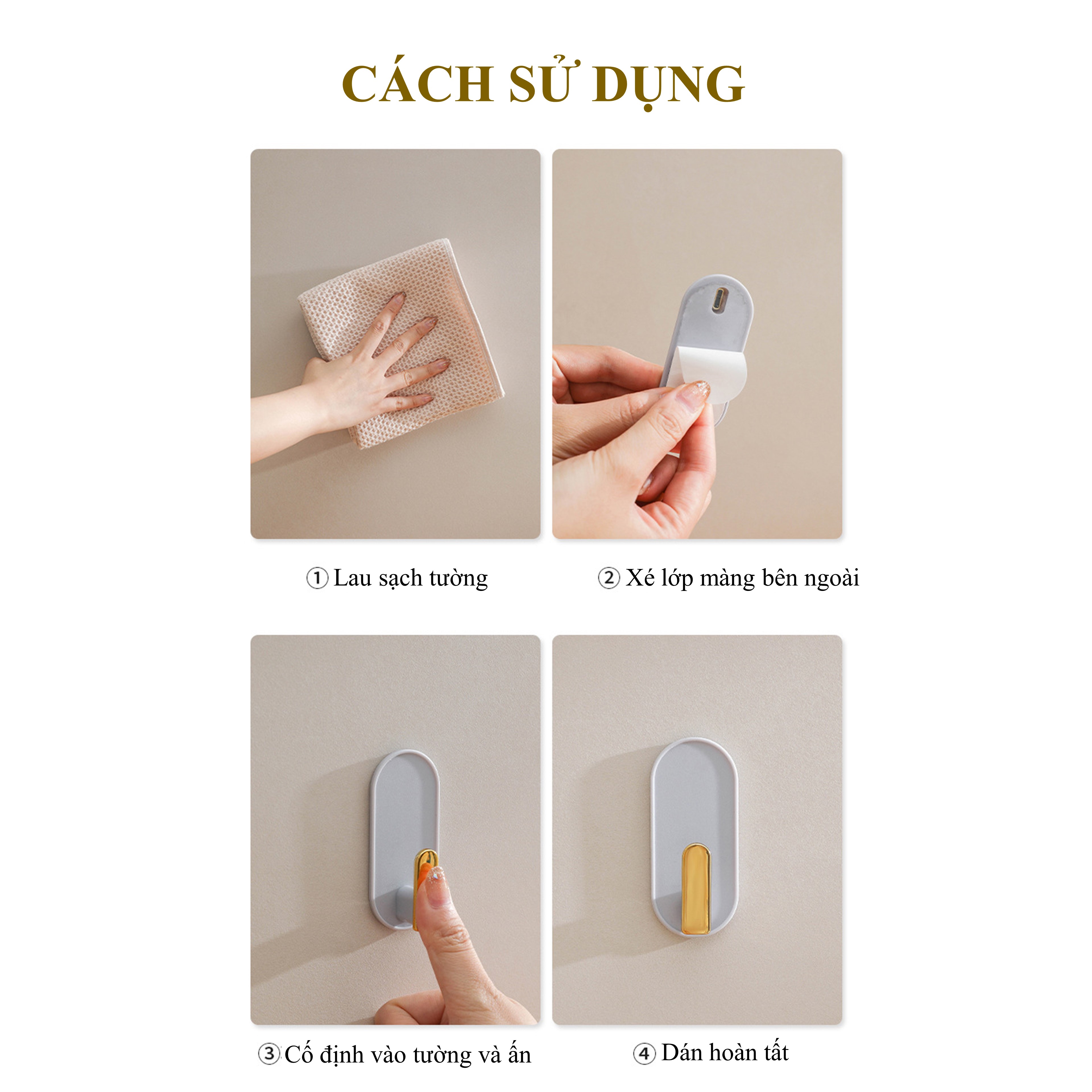 Móc dán tường riêng lẻ thiết kế bản to treo đồ chắc chắn. Bản móc treo chữ nhật xinh xắn, trang trí nhà tăng phần thẩm mỹ.