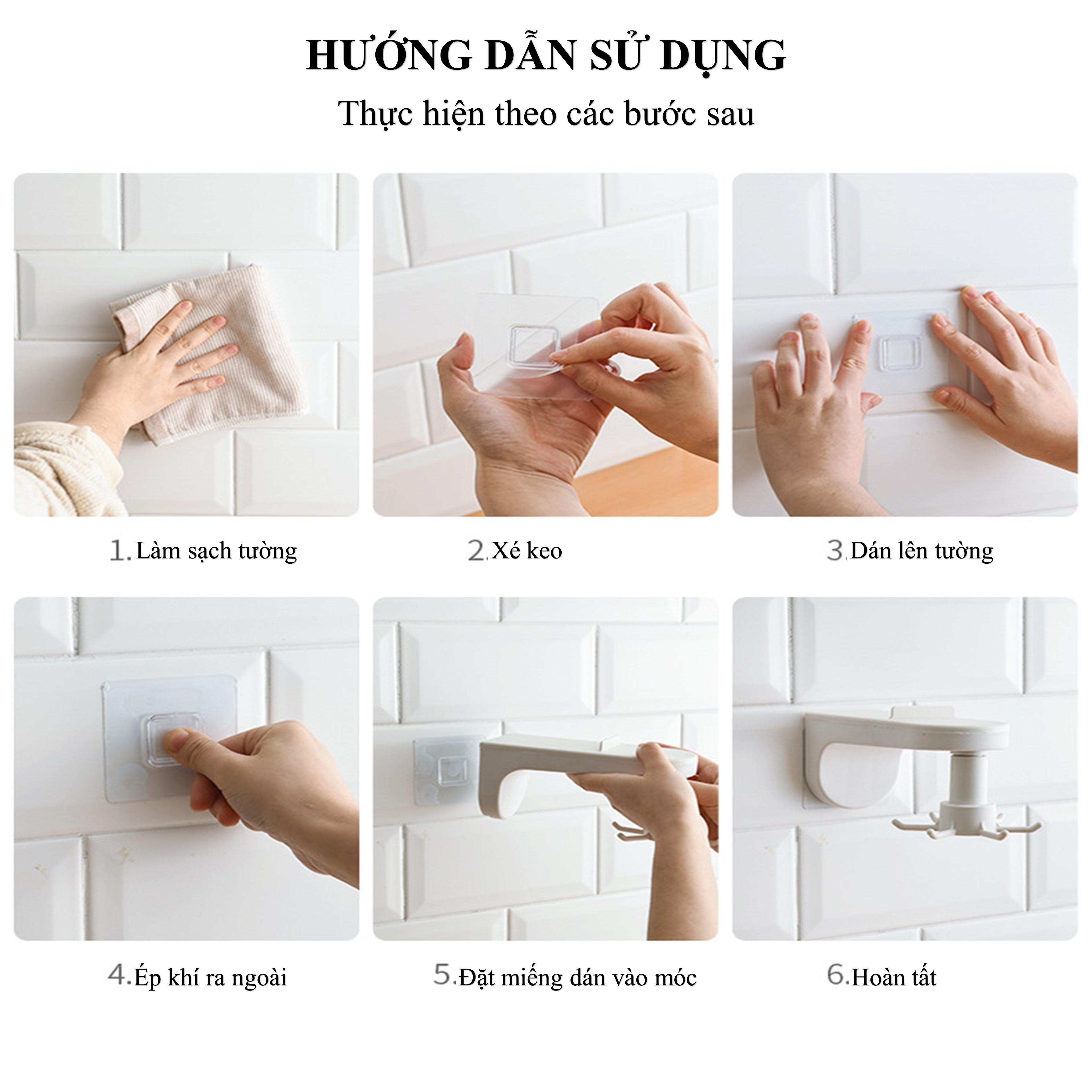 Mỗi móc treo sẽ được tặng kèm 2 miếng dán lớn, miếng dán bám chắc, an tâm treo đồ.