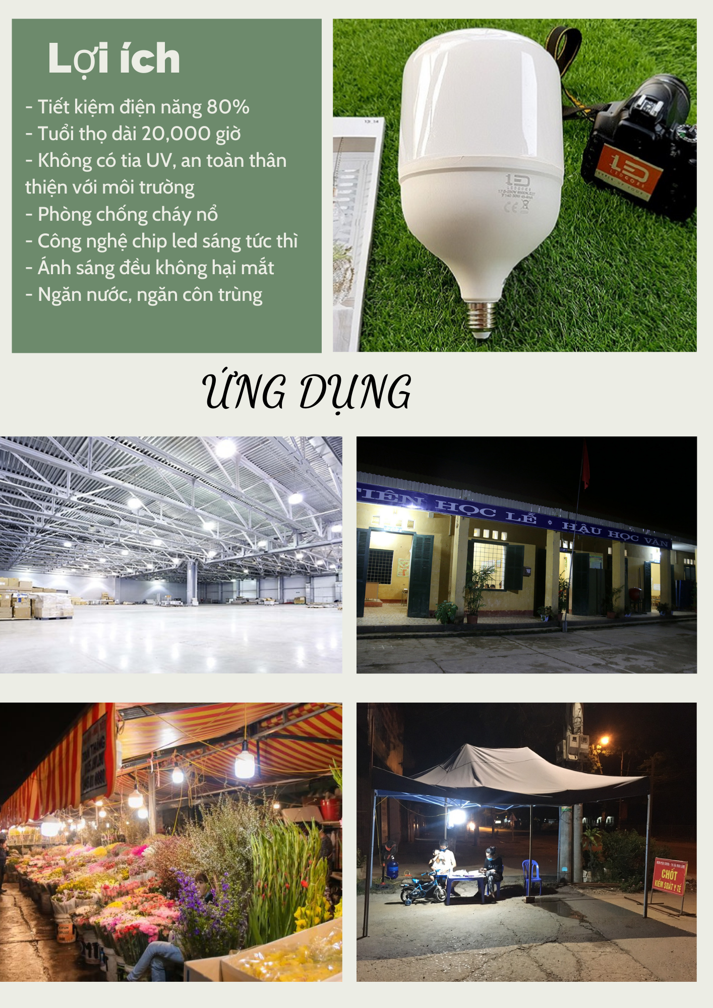 | Chất liệu | Vỏ đèn bằng chất liệu nhựa tổng hợp cao cấp. Đui đèn bằng chất liệu hợp kim dẫn điện tốt. |