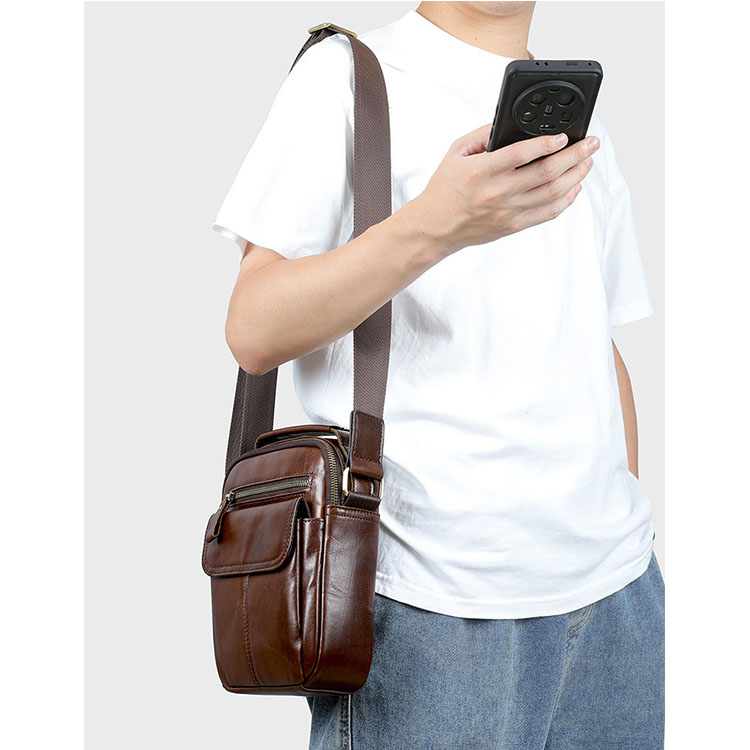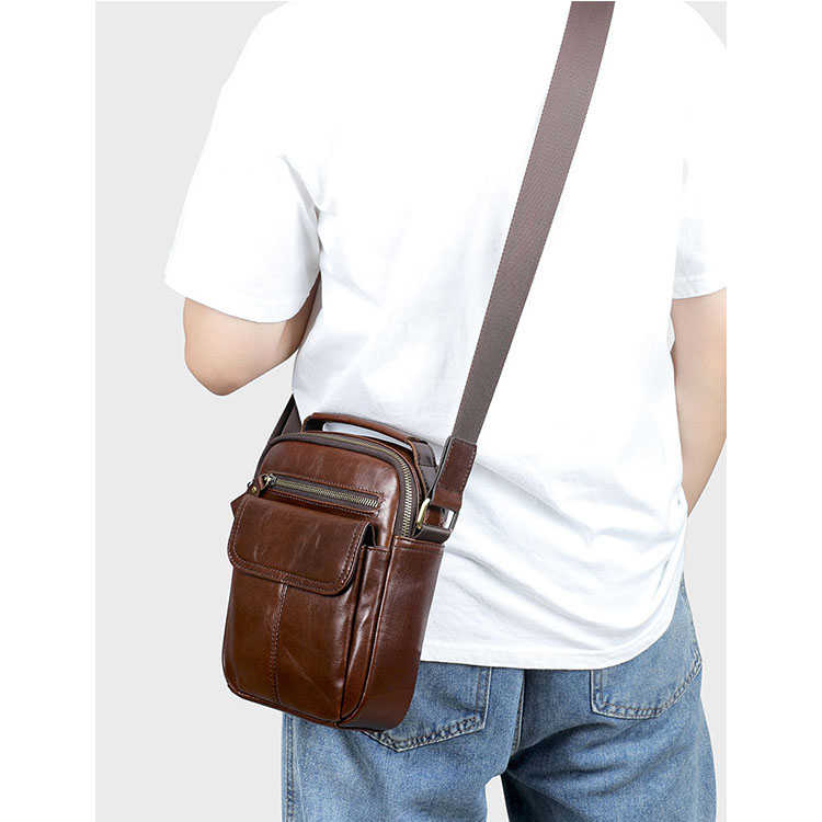 Giới thiệu Túi đeo chéo nam da bò thật BHM6090 nhỏ gọn, có tay xách