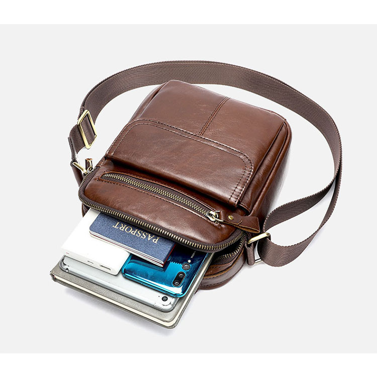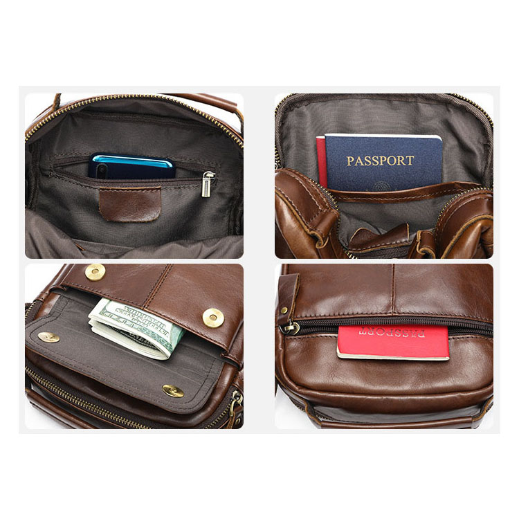 Túi đeo chéo nam da bò thật BHM6090 Nhiều ngăn nhỏ tiện dụng giúp bạn thoải mái sắp xếp các phụ kiện cá nhân 1 cách hợp lý