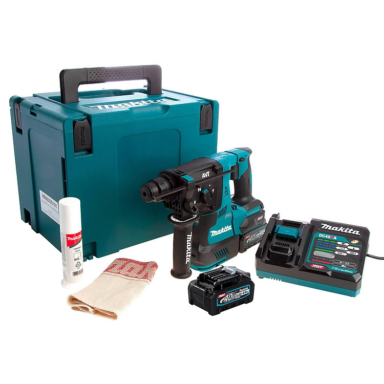 Trong hộp có: Máy kèm 2 pin 40Vmax-4Ah và 1 đế sạc nhanh Thùng đựng bằng nhựa Makpac