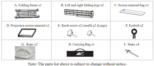 * Màn hình không chịu được gió lớn; chỉ sử dụng khi có gió nhẹ (tối đa 7 dặm/giờ)