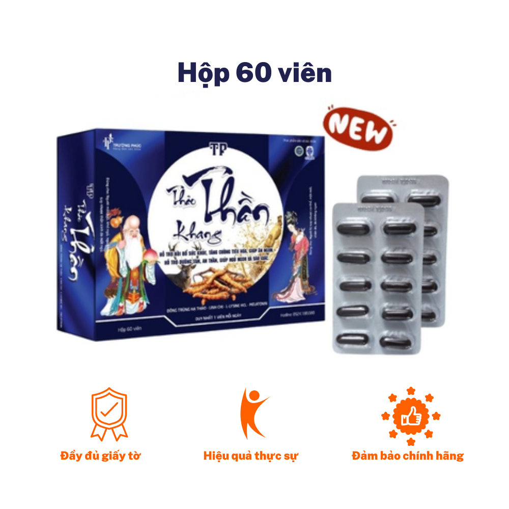 Viên uống dưỡng tâm an thần THẢO THẦN KHANG, giúp ăn ngon ngủ tốt, thành phần đông trùng hạ thảo và nhung hươu hộp 60 viên - D2 Group