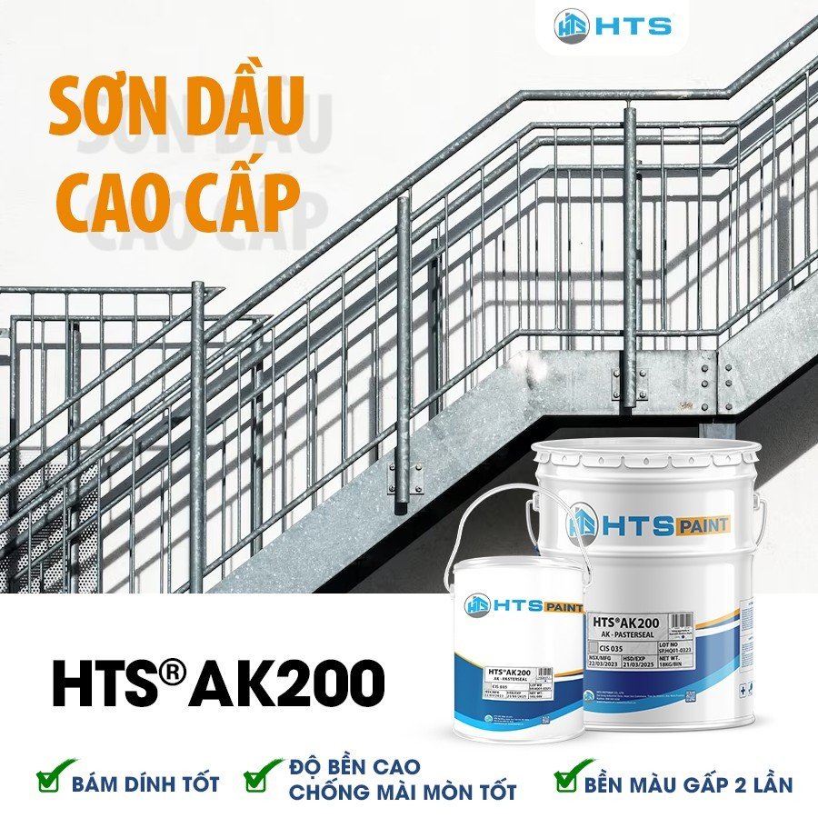 HTS AK200 là sản phẩm sơn dầu alkyd cao cấp sử dụng trực tiếp trên các bề mặt không cần sơn lót và có yêu cầu cao về kỹ thuật đòi hỏi có độ bóng và độ bền cao. Sản phẩm được sử dụng để phủ hoàn thiện có tác dụng trang trí và bảo vệ các bề mặt kết cấu sắt, thép, gỗ và kim loại.