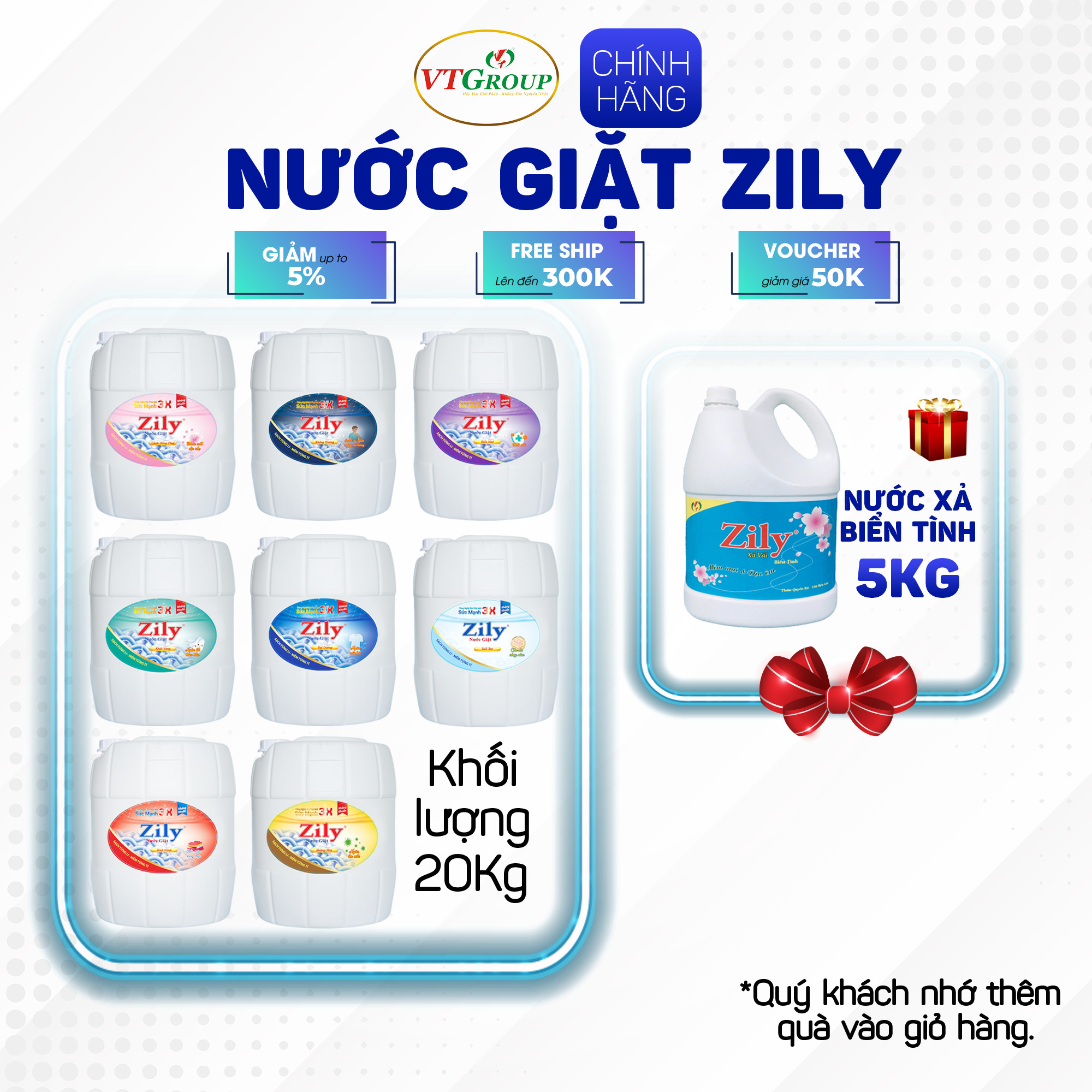 Nước giặt Zily can 20Kg - Tặng 5 Dây Xả Vải Zily ( 10 Gói/Dây )