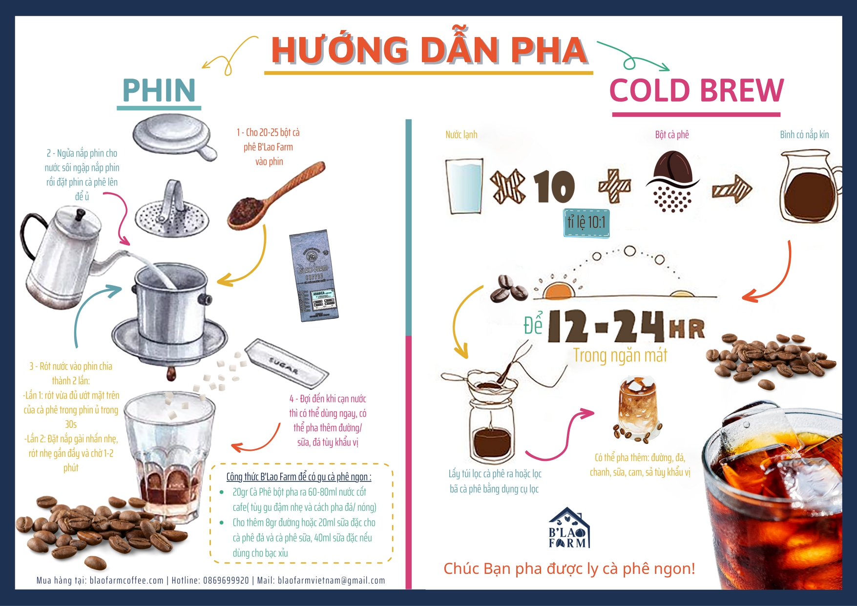 | Hướng dẫn sử dụng | Hướng dẫn sử dụng : - Cho vào phin 3 muỗng (khoảng 20g) cà phê bột. - Lắc đều và ép nhẹ nắp gài bên trong - Dùng khoảng 20ml nước tinh khiết đun sôi ở nhiệt độ 96 -100 độ C châm vào phin chờ cà phê ngấm đều, sau đó châm thêm khoảng 45ml nước sôi. - Thêm đường hoặc sữa , đá tùy thích theo khẩu vị của bạn . |