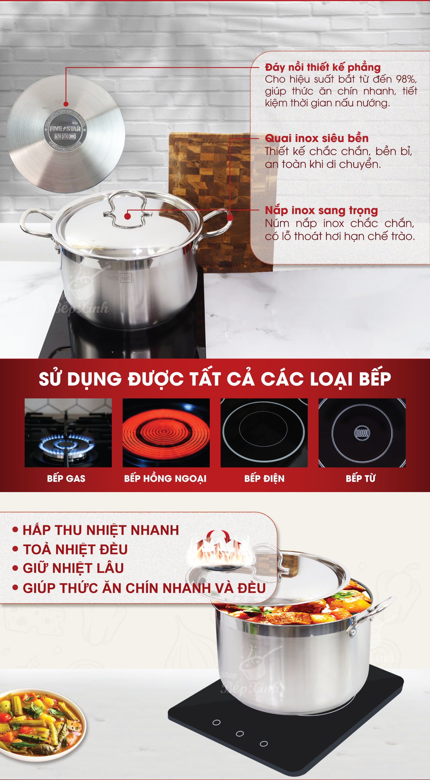 Giới thiệu Nồi inox 3 đáy inox 430 cao cấp FiveStar Standard N28-3D bếp từ nắp inox ( 28cm)