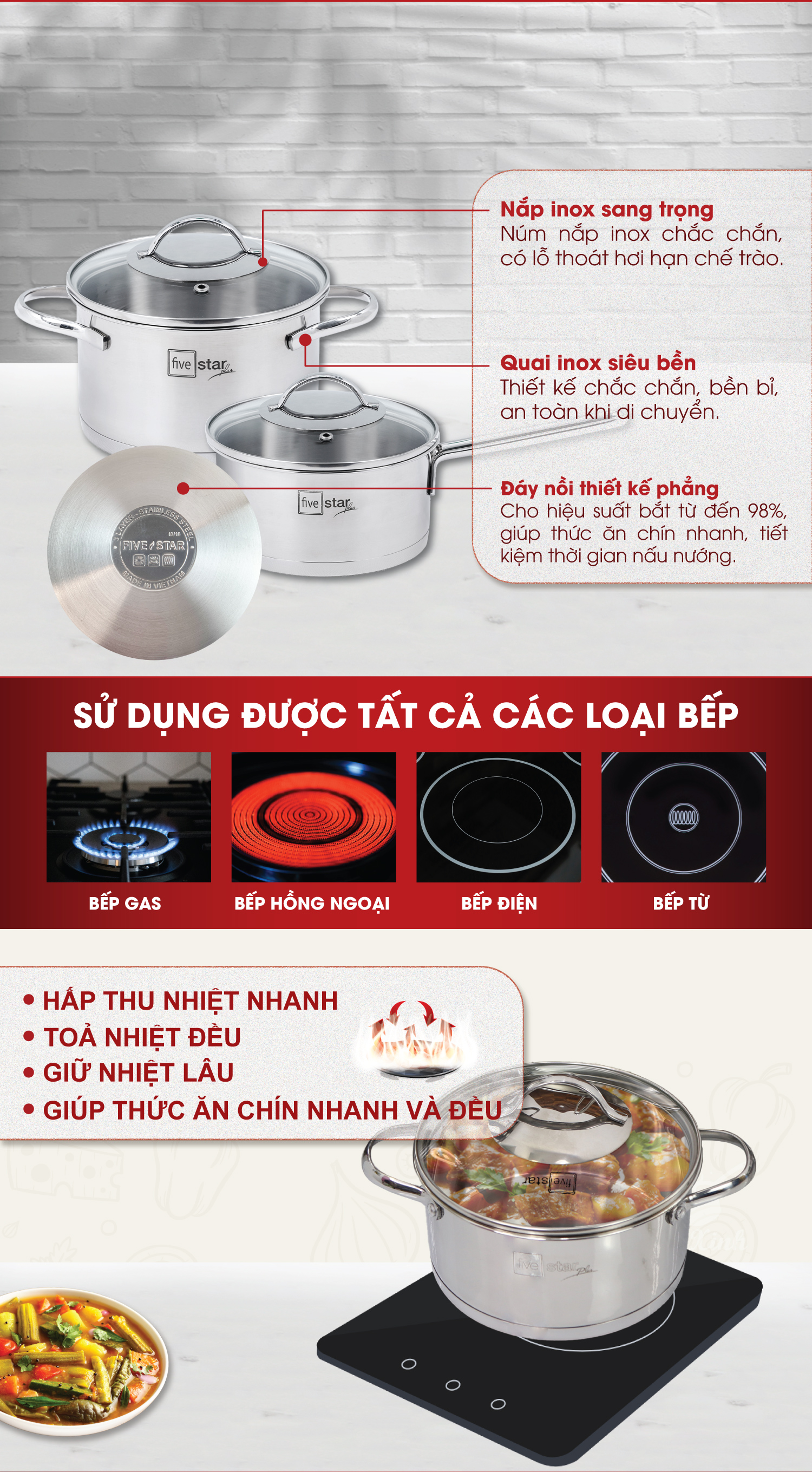 Mua Bộ nồi chảo chống dính cao cấp Fivestar Plus 6 món nắp kính , dùng được mọi bếp , tặng 1 vá canh giá rẻ nhất ở đâu?Five Star