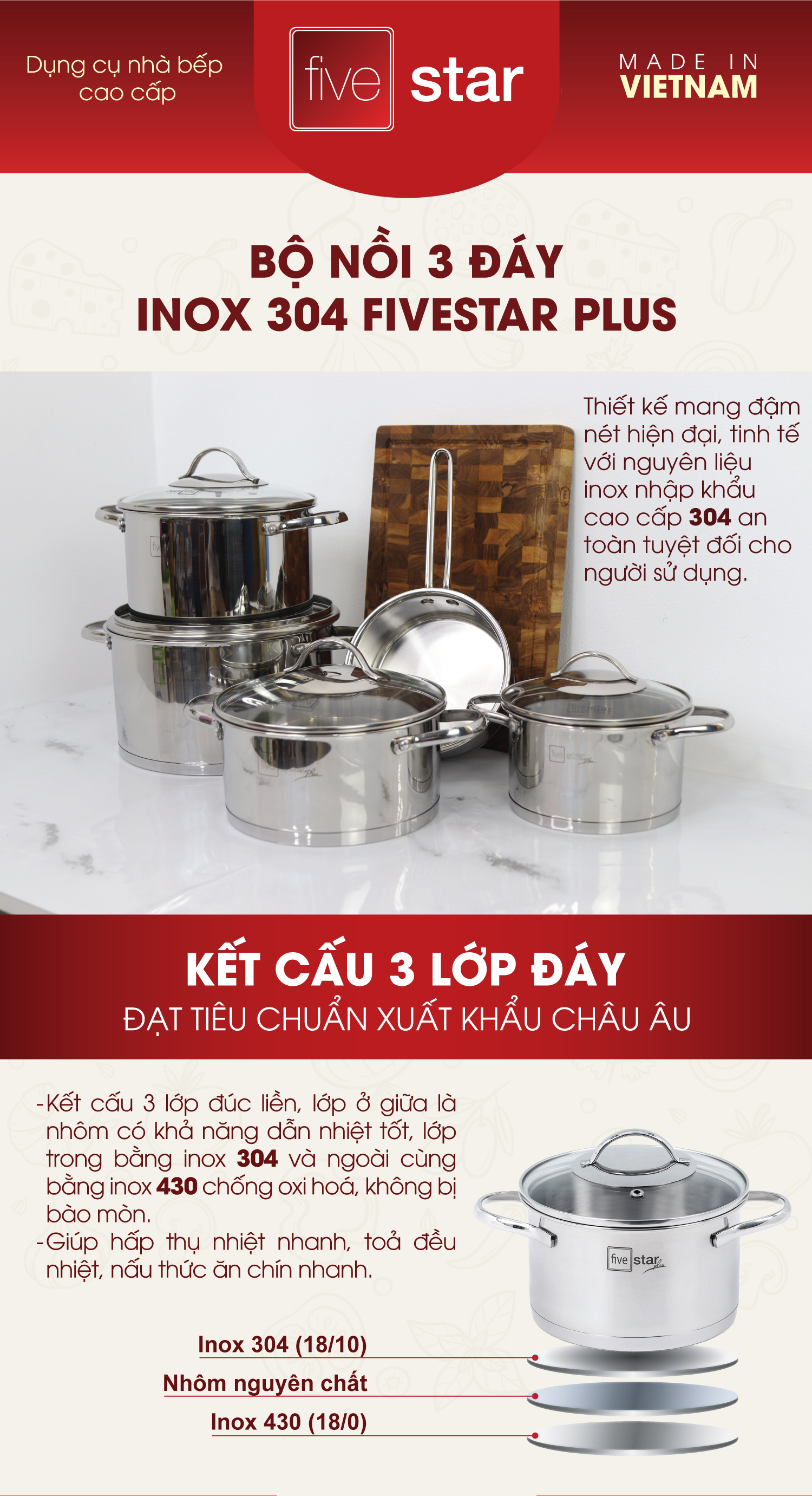 3,350,000₫Giới thiệu Bộ nồi chảo chống dính cao cấp Fivestar Plus 6 món nắp kính , dùng được mọi bếp , tặng 1 vá canh