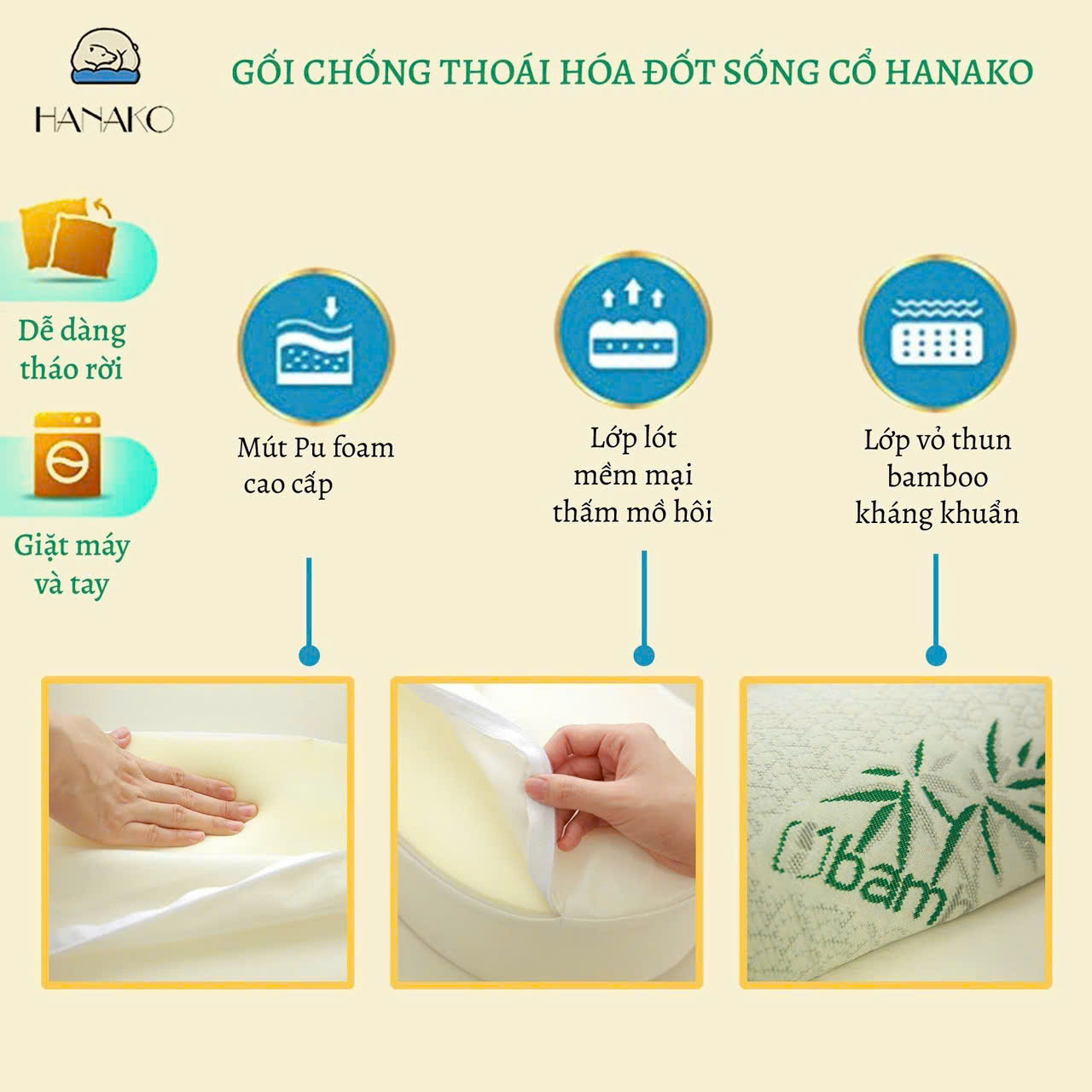 Vỏ gối được làm từ thun tre hoạt tính giúp hút mồ hôi và kháng khuẩn, tạo cảm giác dễ chịu cho người nằm.