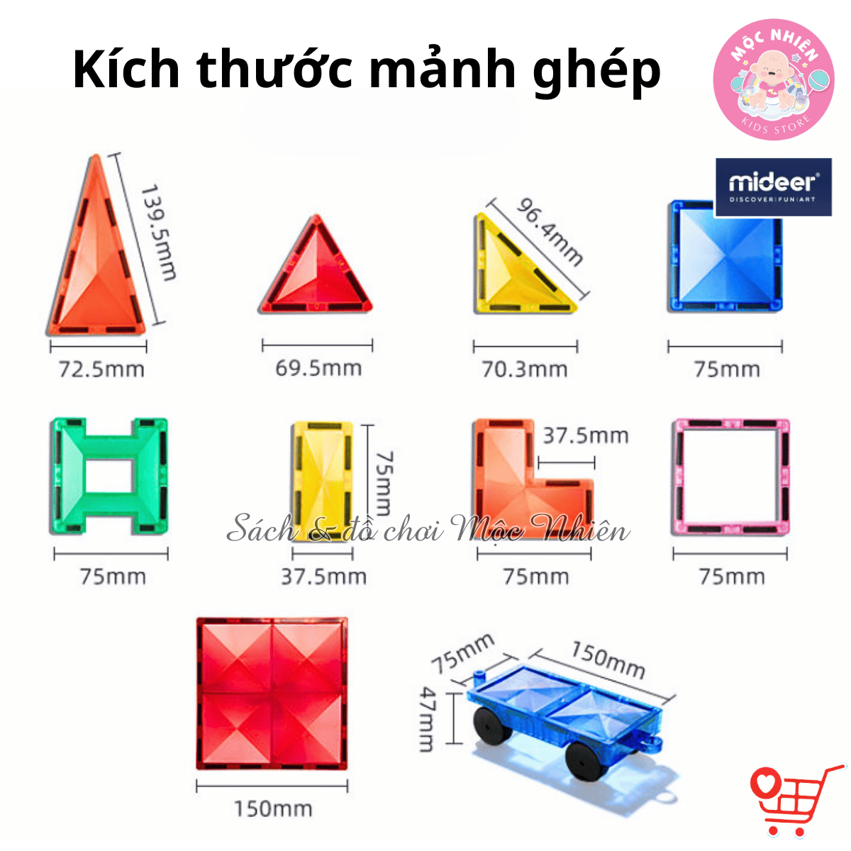 Đồ chơi xếp hình nam châm ánh sáng cầu vồng Mideer Colorful Magnetic Tiles cho bé từ 3 tuổi trở lên