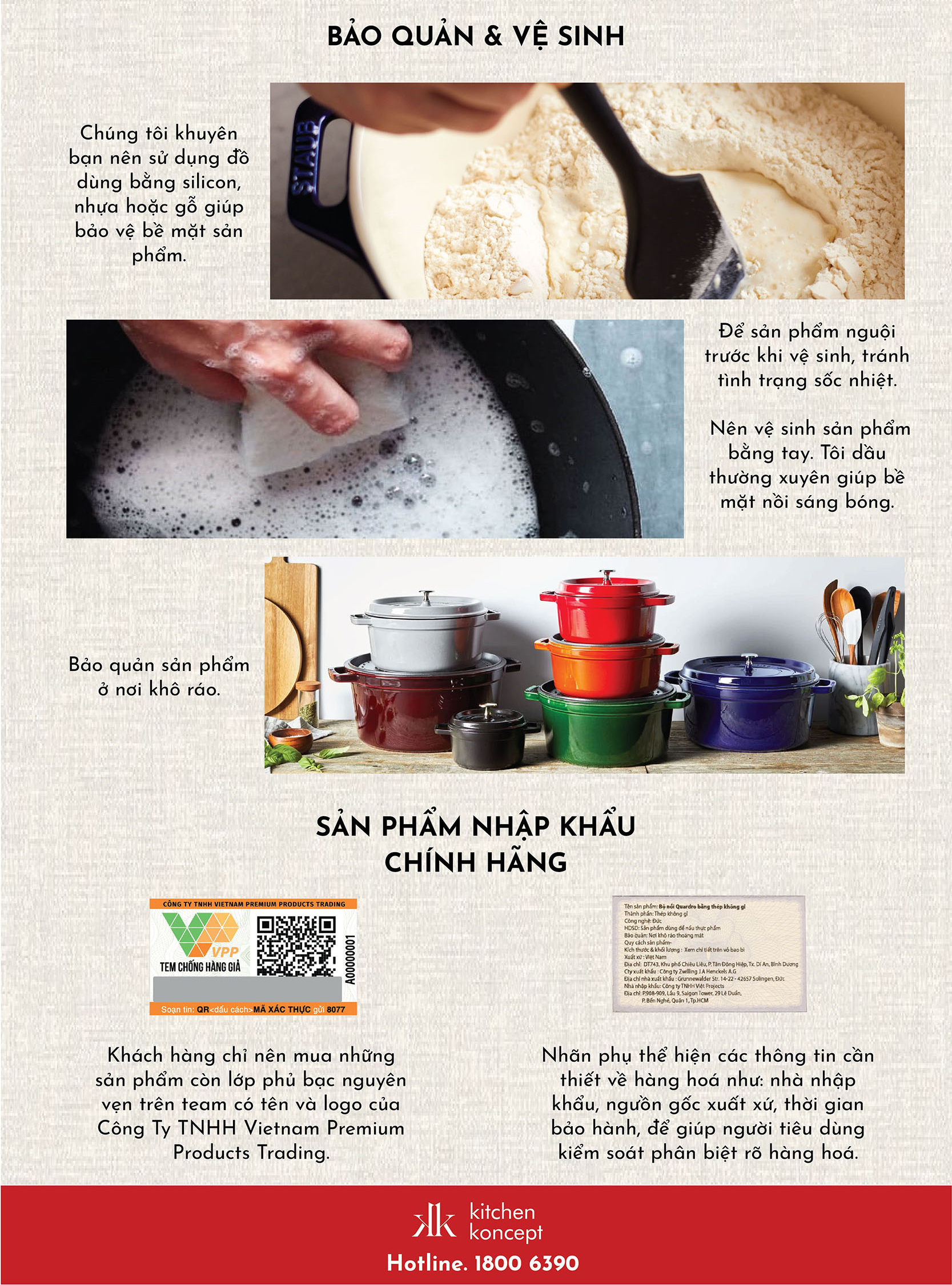 Staub - Nồi tròn màu đỏ cherry được sản xuất hoàn toàn tại Pháp, bằng việc kết hợp giữa các yếu tố truyền thống và hiện đại. Mang đên cho bạn những trải nghiệm tuyệt vời khi chế biến các món ninh, hầm, áp chảo.