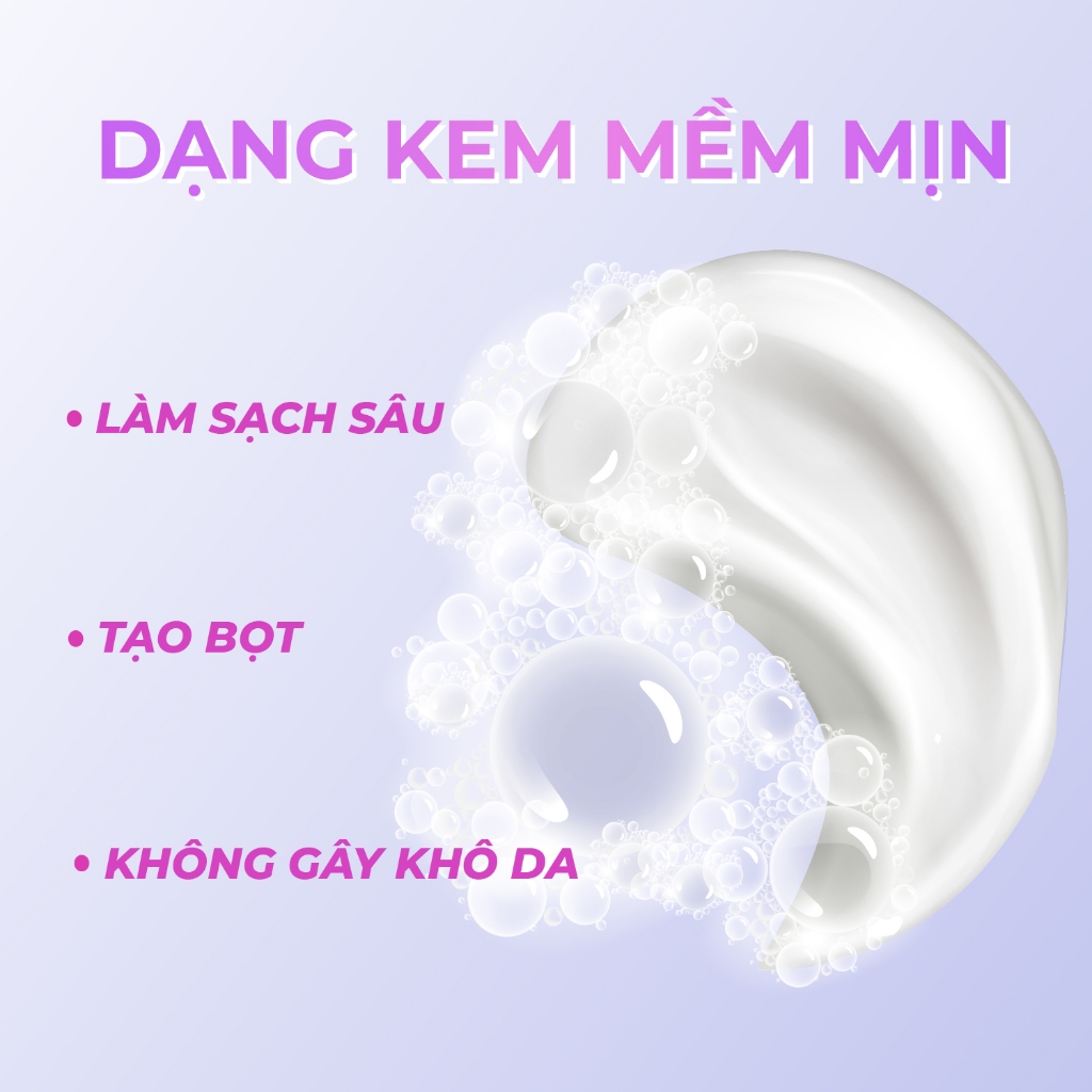 - Sạch sâu từng lỗ chân lông. Giúp làm sạch nhẹ nhàng cho da, làm sạch bụi bẩn, dầu thừa, bã nhờn trên da