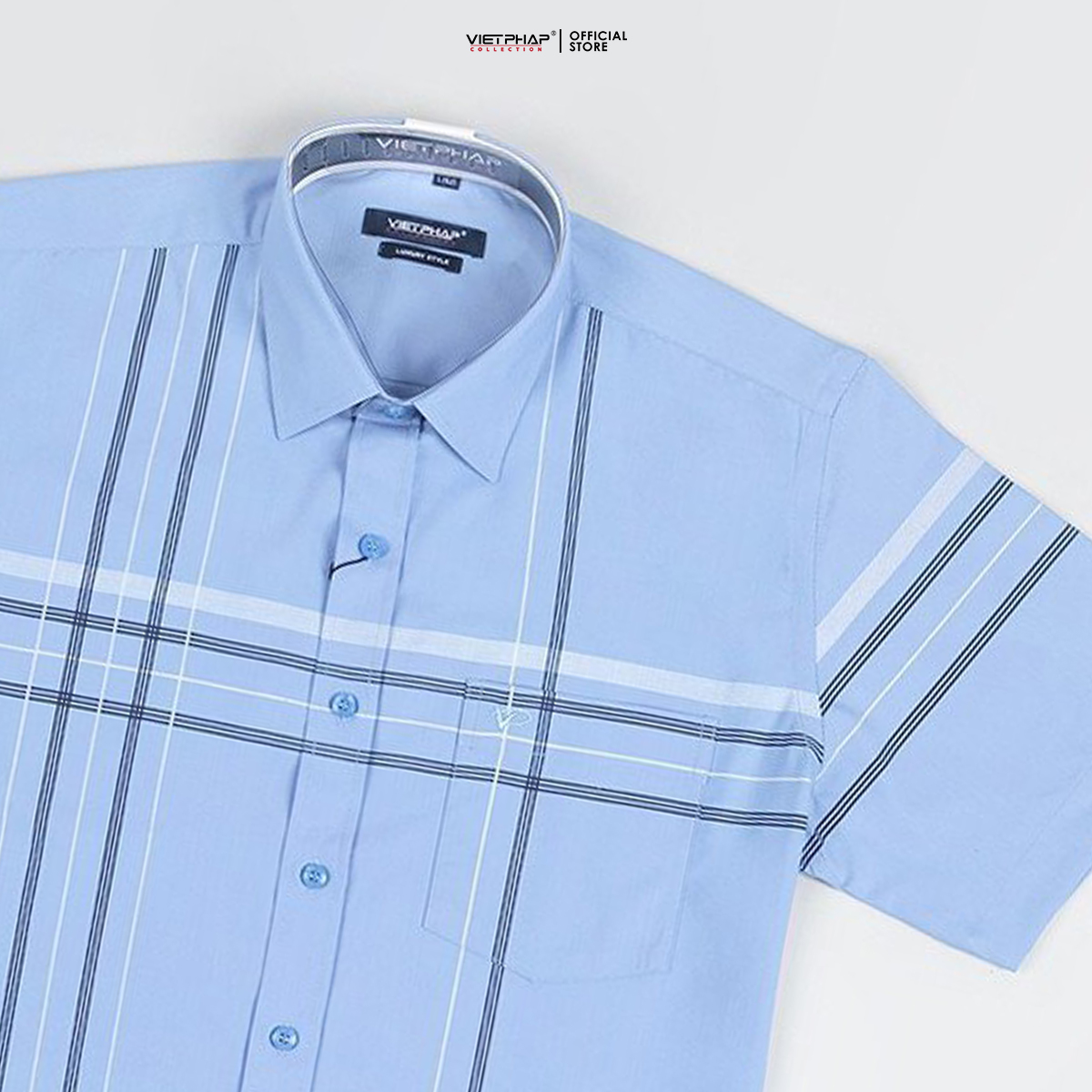 Khám phá phong cách lịch lãm với Áo Sơ Mi Nam Ngắn Tay VIỆT PHÁP Form Luxury Chất liệu Bamboo In Sọc 35514