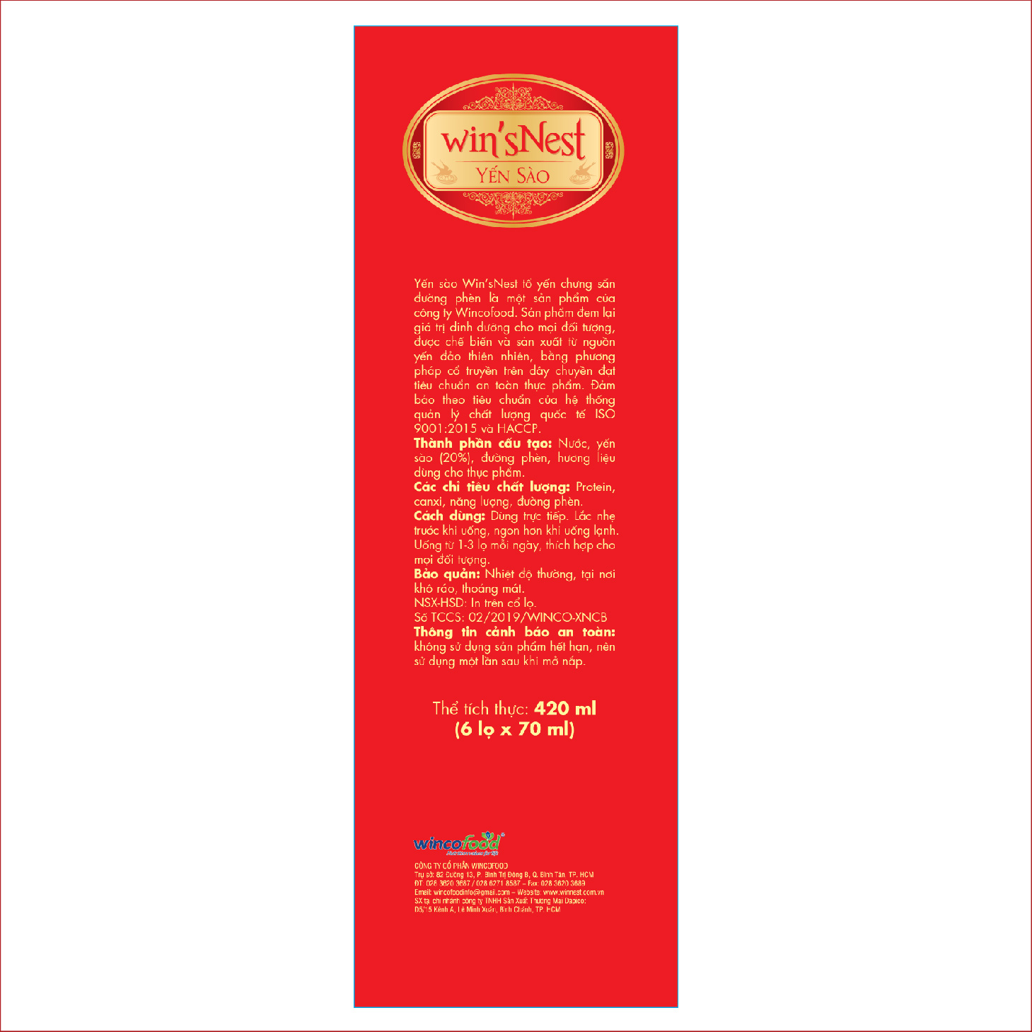 Combo 2 hộp Yến sào win'sNest (20%) chưng sẵn đường phèn (6 Lọ x 70ml / Hộp)